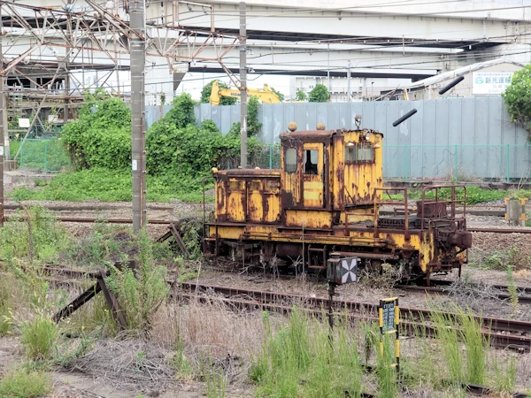 浜川崎駅ホームの横には、もう使われなくなって久しいであろう「スイッチャー」が放置されていました。